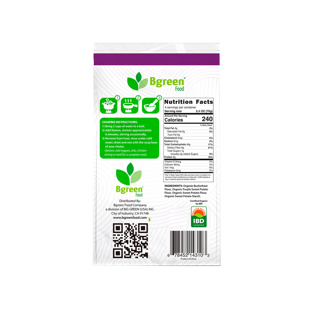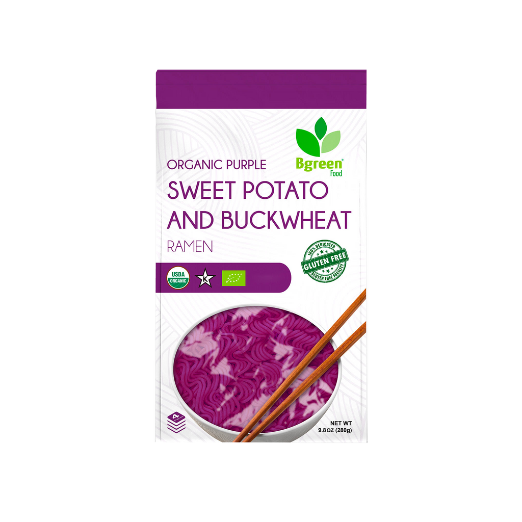 Ingredients: organic buckwheat flour, organic purple sweet potato flour, organic sweet potato flour, organic sweet potato starch
