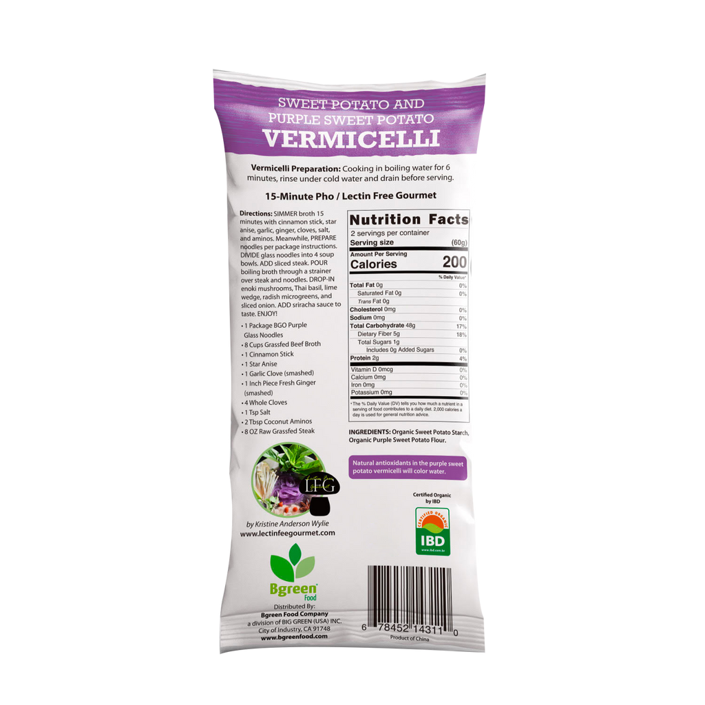 Ingredients: organic sweet potato starch, organic purple sweet potato flour